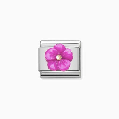Nomination Composable Classic SYMBOLS Steel Enamel And 9k Rose Gold Fuchsia Ibiscus 430202/04