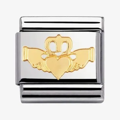 Nomination Composable Classic SIMBOLI Acciaio E Oro 750 Profilo Doppi Cuori Diamantati 030149/64