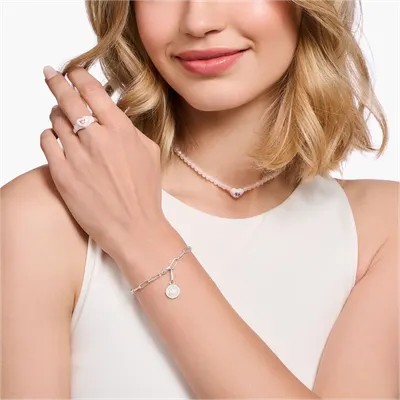 Thomas Sabo Pink Zirconia Heart-Shaped Crystal Sterling Silver Bracelet 19cm A2157-051-9-L19V