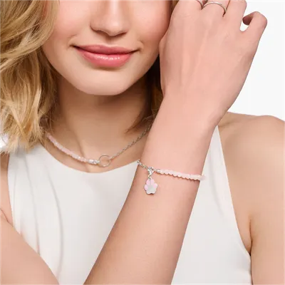 Thomas Sabo Charm Bracelet With Beads Of Rose Quartz And Chain Links Sterling Silver 13cm A2130-067-9-L13V